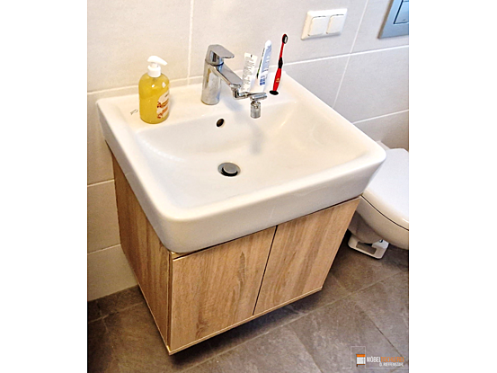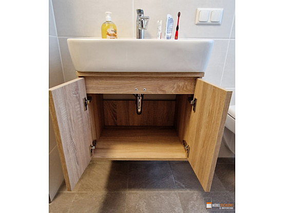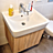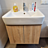 Dieser schwebende Waschtisch in Sonoma-Eiche-Dekor verbindet stilvolles Design mit praktischer Funktionalität und fügt sich perfekt in dieses Badezimmer ein.