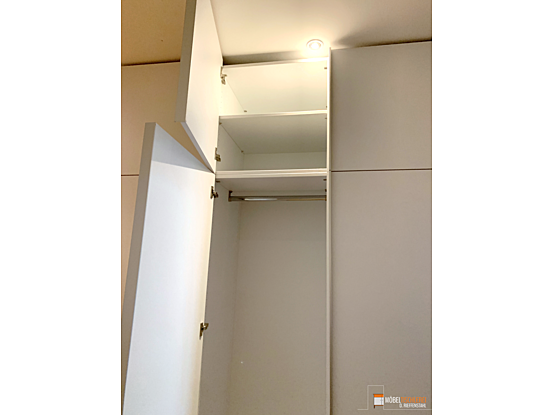 Dieser deckenhohe Flurschrank bietet mit drei Kleiderstangen, Einlegeböden und Schubkästen viel Stauraum für Jacken, Accessoires und mehr. Die eleganten Griffleisten ermöglichen einfaches Öffnen und Schließen, während die Spiegeltür das Prüfen des Outfits vor dem Verlassen des Hauses ermöglicht.