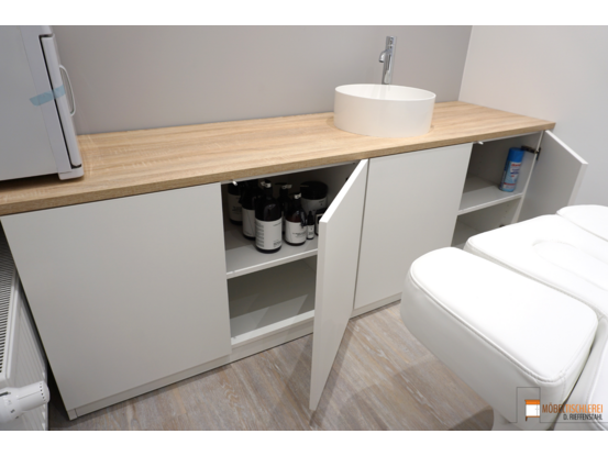 In den Massageräumen eines Spas sorgen individuell gestaltete Sideboards in Weiß und Sonoma-Eiche für eine beruhigende Atmosphäre. Diese hochwertigen Maßmöbel bieten nicht nur praktischen Stauraum für Utensilien, sondern unterstreichen die stilvolle und funktionale Raumgestaltung. Sie sind eine perfekte Möbellösung, die Ruhe und Gemütlichkeit ausstrahlt und das Spa-Erlebnis auf elegante Weise vervollständigt.