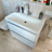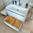Dieser Unterschrank ist perfekt an die Größe des Waschbeckens angepasst. Die zwei Schubkästen mit dezenten Alu-Griffleisten (wahlweise mit Innenunterteilung) bieten praktischenStauraum für kleine Badutensilien.