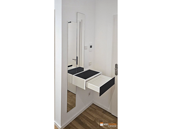 Diese stilvollen Flurmöbel im klassischen Schwarz-Weiß-Kontrast setzen auf ein reduziertes Design und fügen sich harmonisch in den Raum ein.