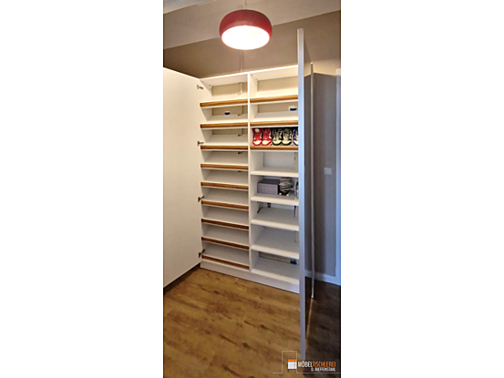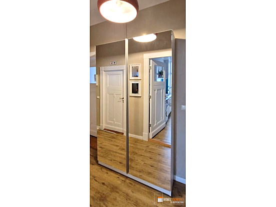 Dieser Schuhschrank mit Spiegeltüren bietet Platz für Sneaker und flache Schuhe, während er den Flur optisch vergrößert. Schräg angeordnete Einlegeböden sorgen für mehr Übersicht und sparen Platz. Die massiven Eichenholz-Leisten verhindern das Herausrutschen der Schuhe. Zusätzlich bietet er Stauraum für Schuhzubehör und Kleinigkeiten.