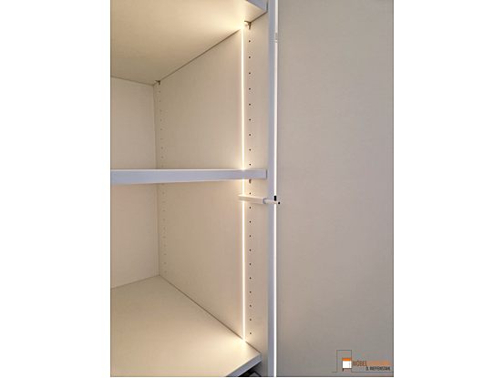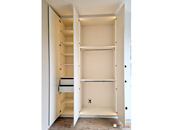 Dieser Kleiderschrank bietet eine praktische Lösung für die übersichtliche Aufbewahrung von Kleidung. Mit Kleiderstangen für Jacken und Hemden, Schubkästen für Socken und Unterwäsche sowie flexibel einlegbaren Böden für Hosen und Pullover bietet der Schrank ausreichend Stauraum. Beim Öffnen entsteht durch die integrierte LED-Beleuchtung ein gemütliches und einladendes Ambiente im Zimmer.